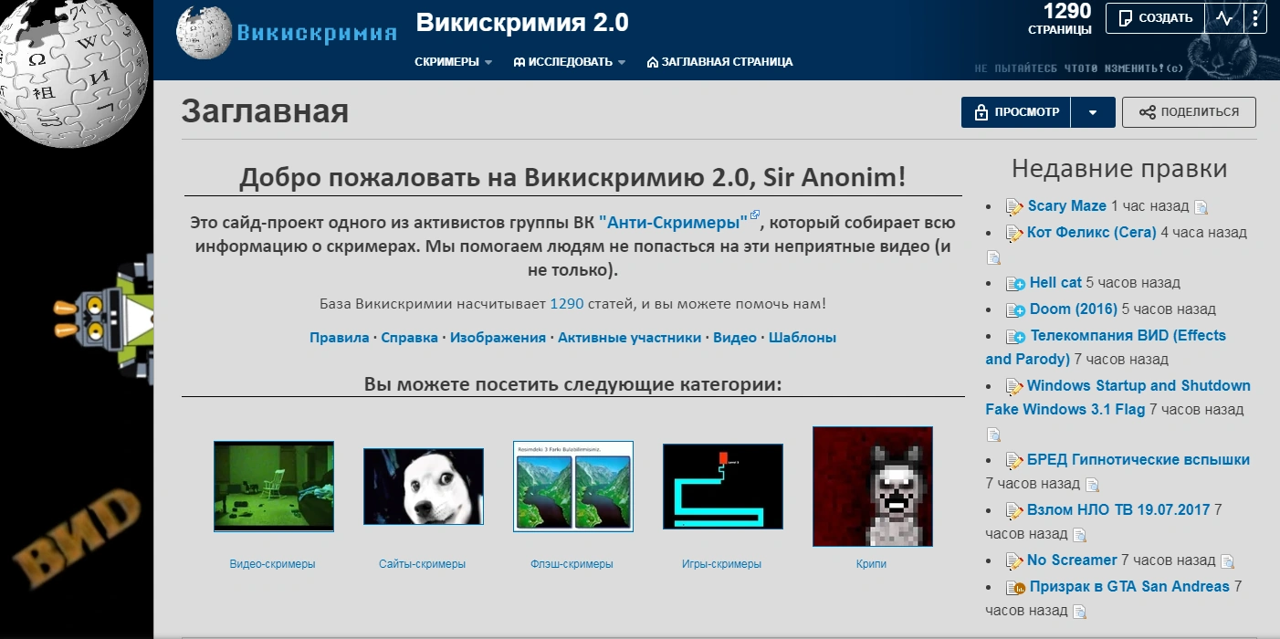 Анти-Скримеры Вики (Викискримия 2.0) — википроект, посвященный сбору информации о различных скримерах. На данный момент на проекте уже и он является золотым.