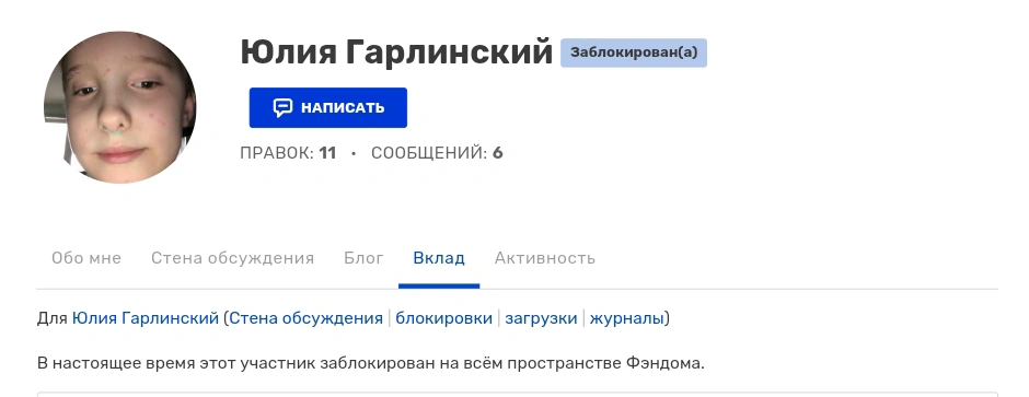 Заглушка во вкладе глобально заблокированного участника