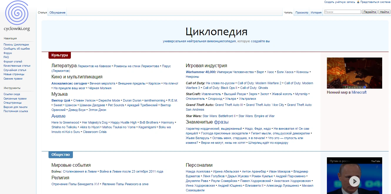 - ↑ Уведомление об открытии Циклопедии в блоге сторонников альтернативных проектов на LiveJournal