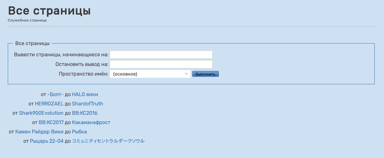 «Все страницы» (англ. AllPages) — служебная страница, отображающая полный список страниц вики.