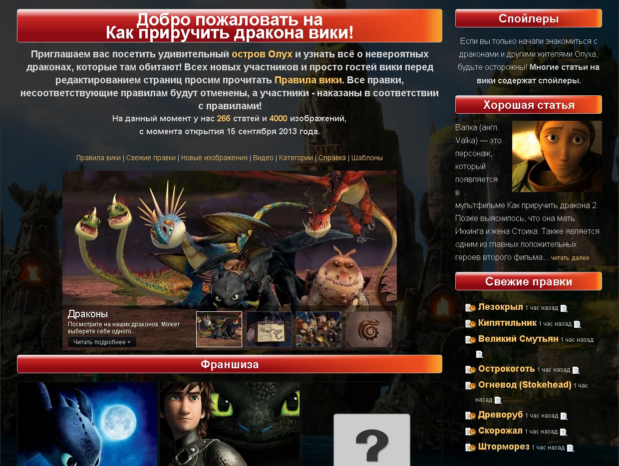 Как Приручить Дракона Вики — русскоязычный википроект, посвящённый серии мультфильмов, игр, книг вселенной «Как приручить дракона». Сейчас на вики .