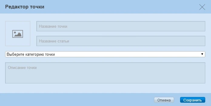 ) и навести курсор на ту часть карты, где требовалось разместить точку. Открывался редактор точки, в котором требовалось заполнить четыре графы: