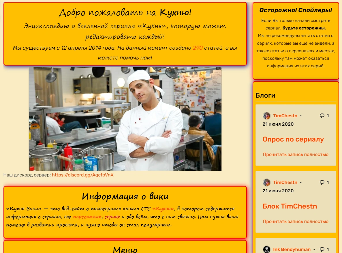 Кухня Вики — русскоязычный википроект, посвящённый одноимённому сериалу. Содержит в себе около .