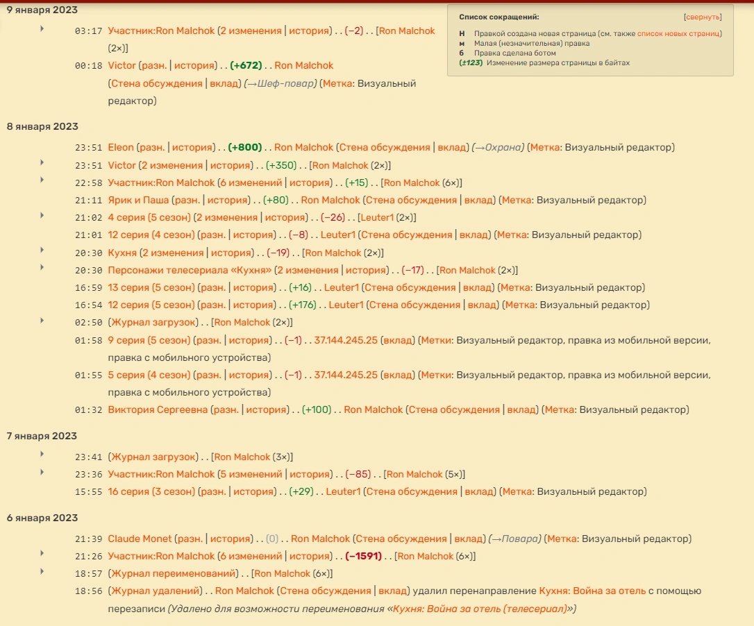 - Ron Malchok - высокоактивный четвёртый администратор проекта. Имеет более трёх тысяч правок.