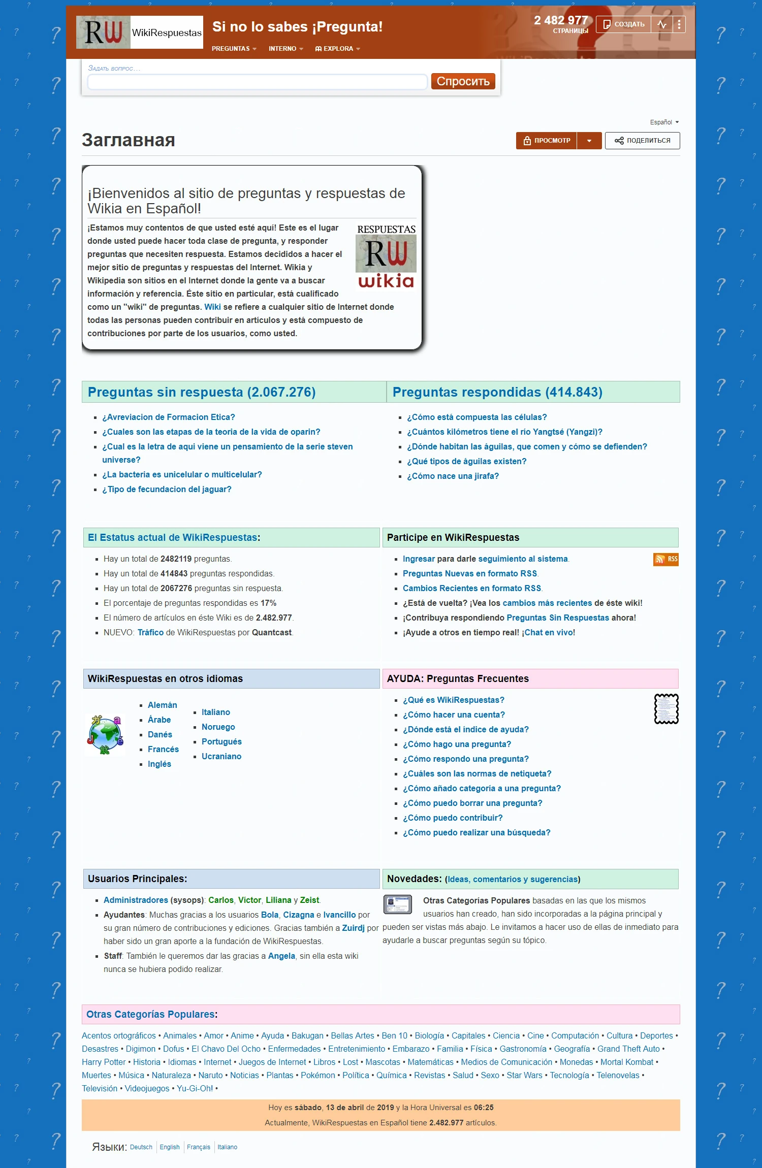 WikiRespuestas была на момент закрытия самым крупным по числу страниц википроектом на Фэндоме — 2 482 976 статей.