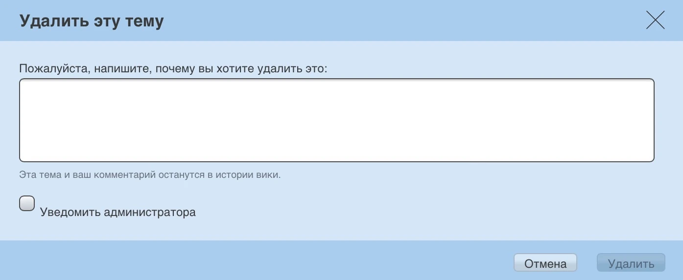 - Возможность закрывать и открывать различные обсуждения. Это действие сохраняется в истории темы.