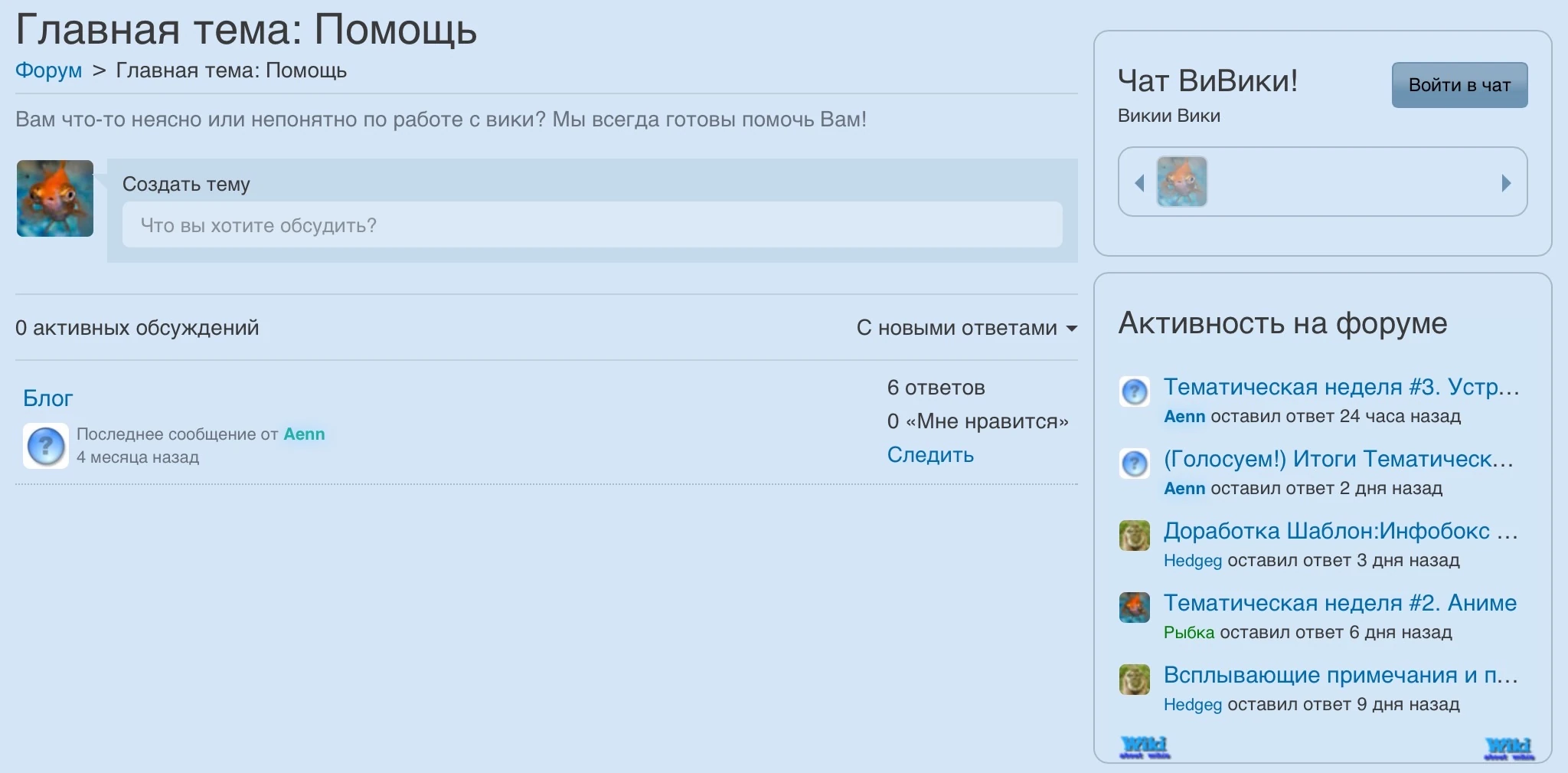 - ↑ w:c:ru.community:Блог участника:Kuzura/Обновление Обсуждений, отключение форумов и добавление блогов