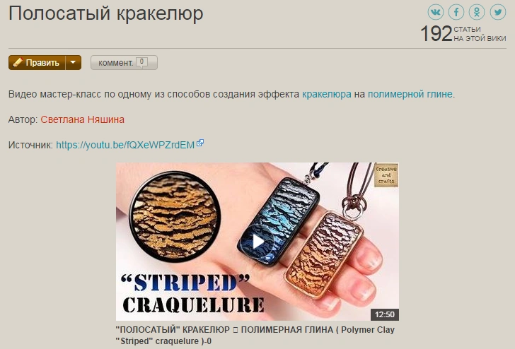 - Статьи «мастер-классы» — уникальные статьи среднего размера, рассказывающие о принципах работы с полимерной глиной[10]