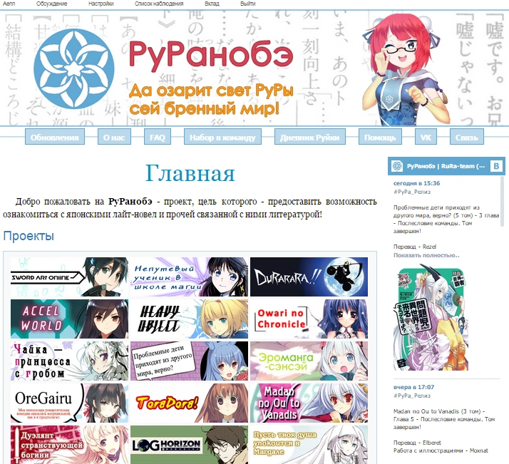 РуРанобэ — русскоязычный бронзовый википроект, посвящённый публикации переводов текстов ранобэ (лайт-новел) с английского и японского на русский.