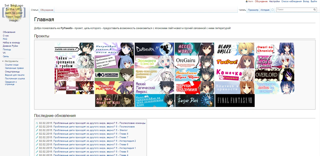 Сам же основатель первые два дня практически не вносил никаких правок, первую статью написав лишь 10 декабря 2013[2]. Называлась она «Heavy Object (Ранобэ, Том 1)» и представляла собой перевод одноимённой «лайт-новел». В тот же день Malfurik’ом были опубликованы подробные переводы трёх других томов данного произведения, заготовки страниц по ранобэ Spice and Wolf, а также важнейший инфобокс «Том»[3]. На следующий день, 11 декабря 2013, он сделал администратором пользователя Rindroid, однако последний начал править на проекте только спустя несколько дней (а именно 17-го числа), и все его правки вплоть до 15 января 2014 сейчас удалены. Malfurik в то же время продолжал довольно регулярно (хоть и отнюдь не ежедневно) публиковать собственные переводы ранобэ; большинство его переводов были полными и законченными, а также всегда включали в себя инфобокс, но иногда он создавал также и заготовки (хотя впоследствии обычно сам их дополнял). 19 декабря 2013 его активность прервалась, но уже 2 января 2014 он сумел восстановить её. Первую правку в новом 2014 году основатель сделал, создав перевод «Днём ранее»[4]. 4 января 2014 ряды администраторов пополнились ещё одним пользователем — Яма Сэки, правда последний в итоге сделал всего лишь около 5 правок (из них ни одной в основном пространстве и пропал). 21 января 2014 Samogot назначил администратором Mithantropist. В отличие от большинства остальных, этот пользователь, в основном, занимался исправлением переводов, правками грамматики и прочими подобными вещами, собственные статьи не публикуя. Его активность держалась вплоть до февраля 2014, оставаясь при этом скорее средней, чем высокой, после чего участник оставил несколько редактирований (по большей части в комментариях) в мае и пропал. 24 января 2014 ещё одним лицом с флагом администрирующего стал Soundwave1900, правда он также сделал не очень много правок и отметился написанием лишь небольшого количества переводов (в то же время он регулярно заходил на вики вплоть до августа 2014, когда википроект переехал).