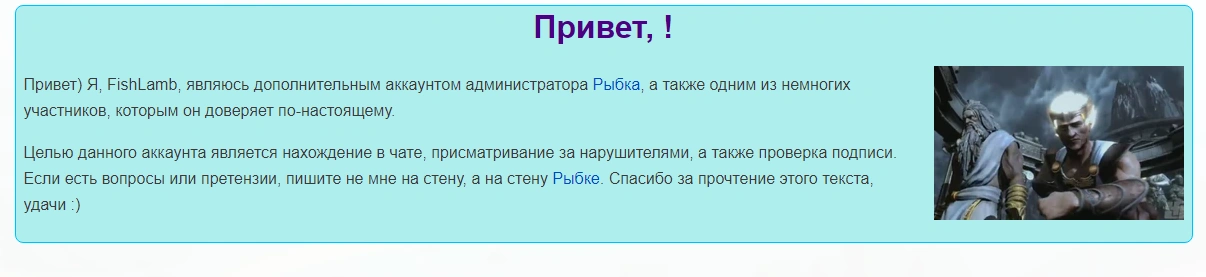- ↑ Автоматическое приветствие аккаунта Рыбка на God of War Wiki
