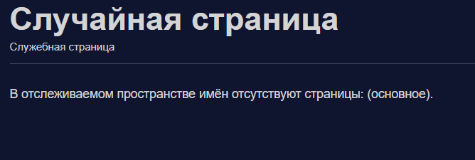 - Если на вики отсутствуют страницы в основном пространстве, то данная служебная страница будет вести на заглавную. Если удалить и её, то пользователь увидит сообщение об отсутствии доступных страниц.