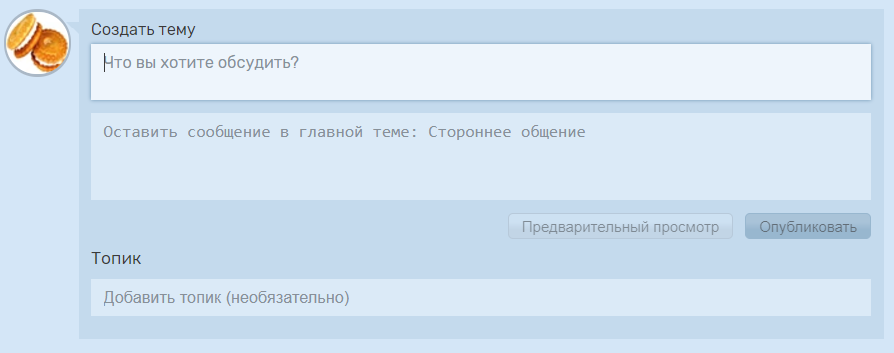Отдельного внимания заслуживает редактор тем на форуме и на стенах обсуждения пользователей: без его помощи просто не получится создать новую тему. Доступ к нему можно получить только на стене обсуждения участника вики или внутри одного из разделов форума.