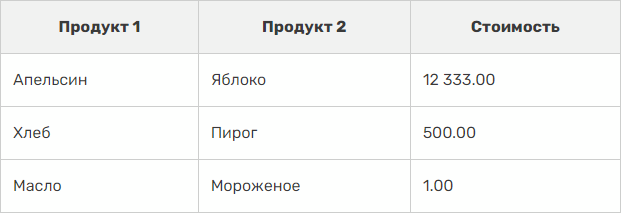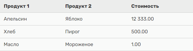 Примечание. HTML-код, закрывающий теги для строк (</tr>), заголовков (</th>) или ячеек (</td>), будет добавлен автоматически.