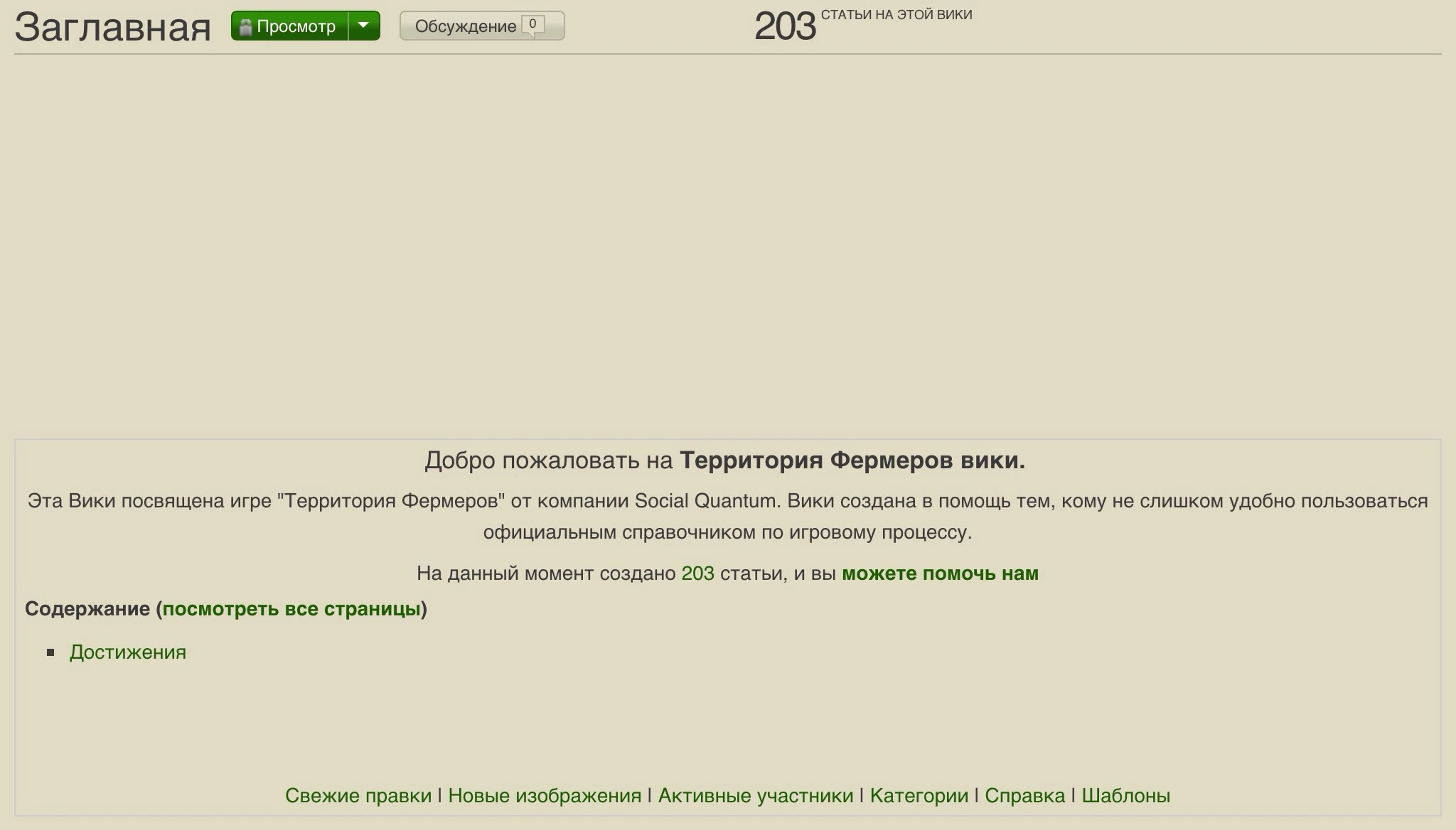 Территория Фермеров Вики — неактивный русскоязычный википроект, посвящённый игре «Территория Фермеров». Содержит .