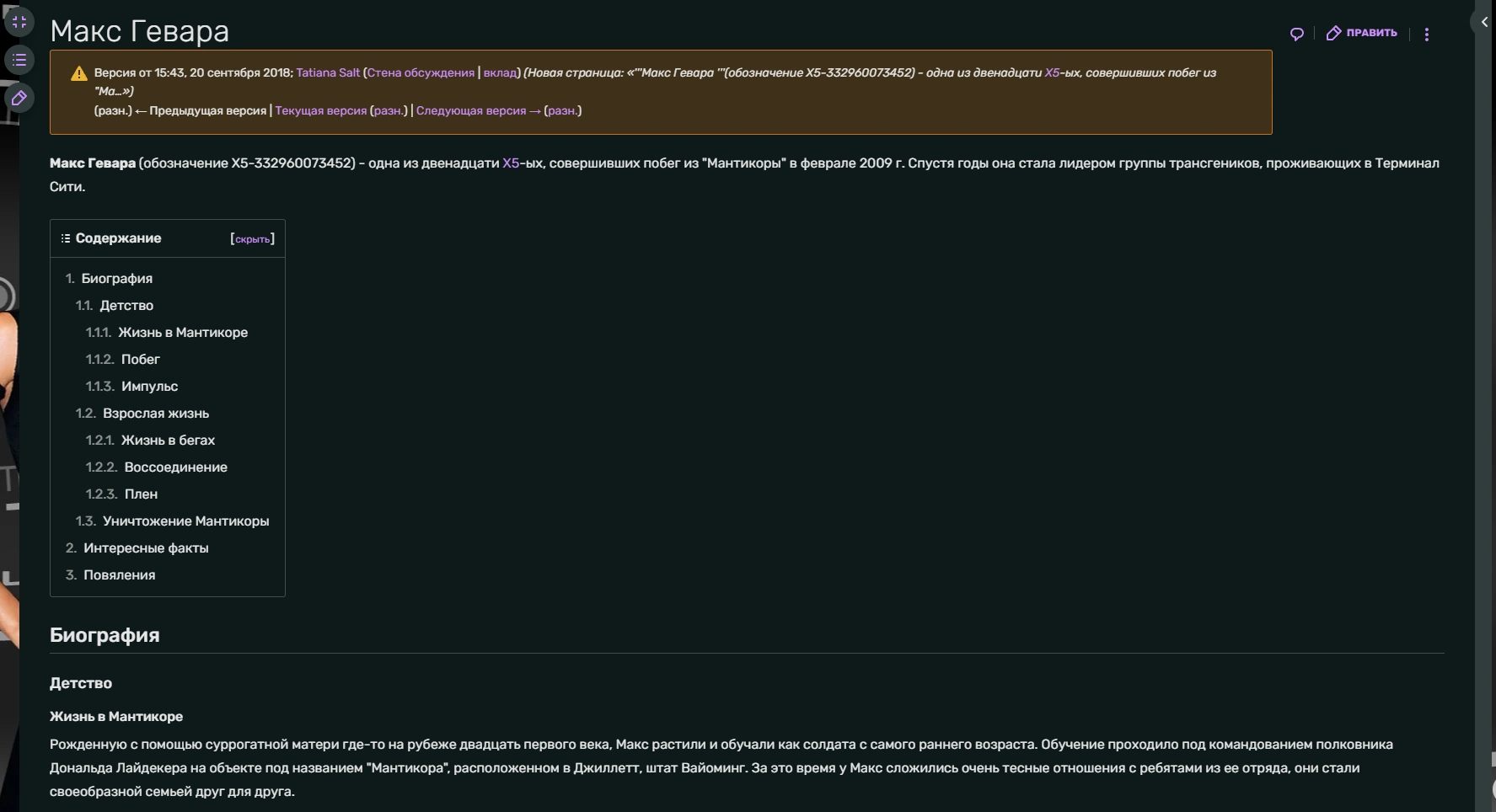 - ↑ Последняя на данный момент правка основательницы
