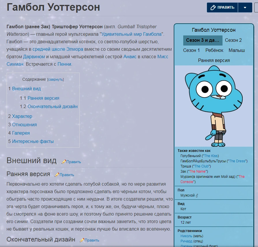 - ↑ Вклад участницы Werecat2001 на Удивительный Мир Гамбола Вики