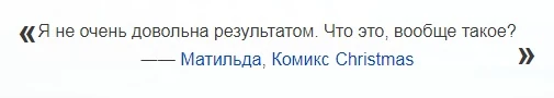 Шаблон, используемый для оформления и выделения цитат персонажей, частей текстов песен и прочего. Как правило, выглядит как курсивный текст, расположенный в центре страницы и заключенный в увеличенные кавычки[4].