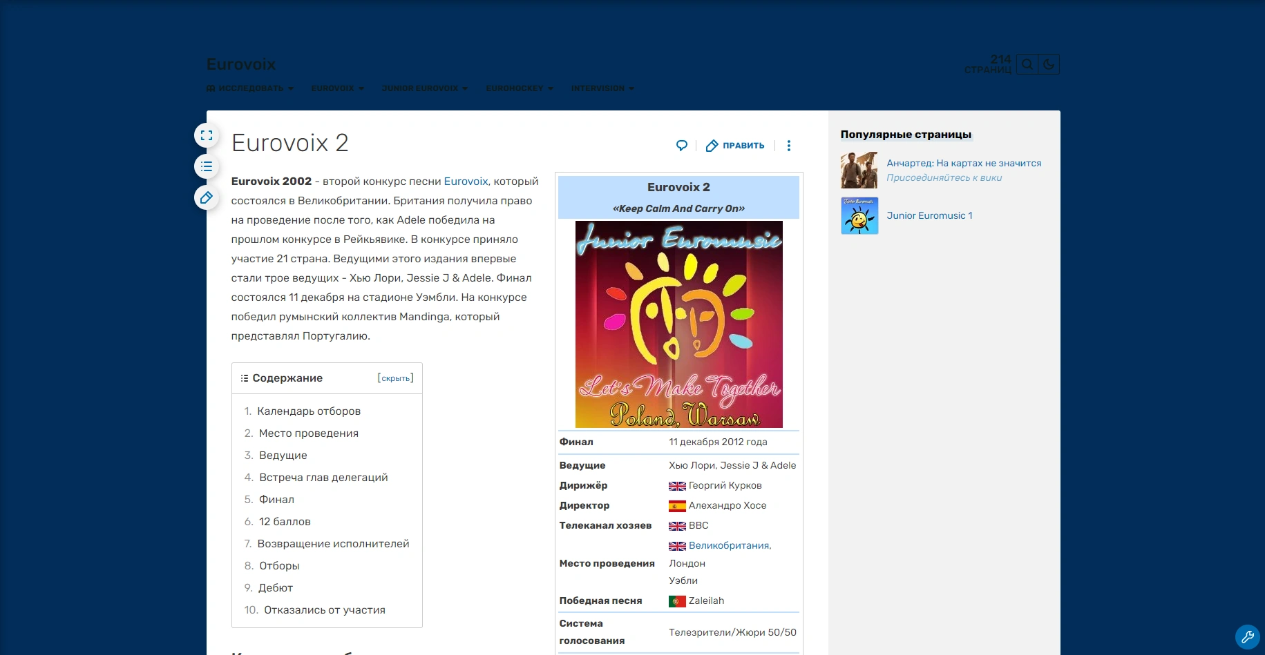 - ↑ 2,0 2,1 2,2 2,3 2,4 2,5 Вклад участника Eurovoix