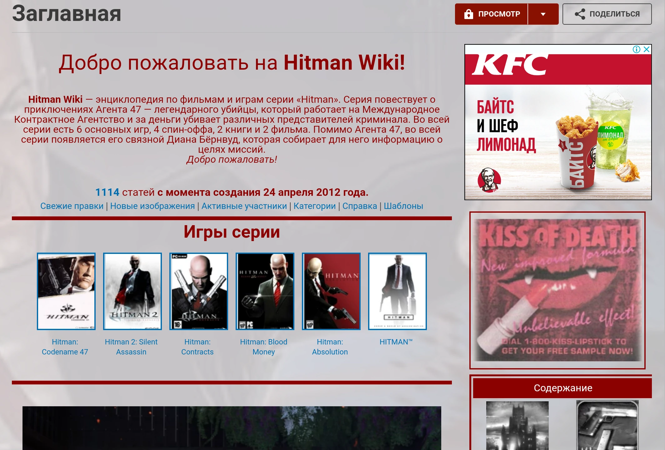 Hitman Wiki — русскоязычный википроект, посвящённый вселенной Hitman.