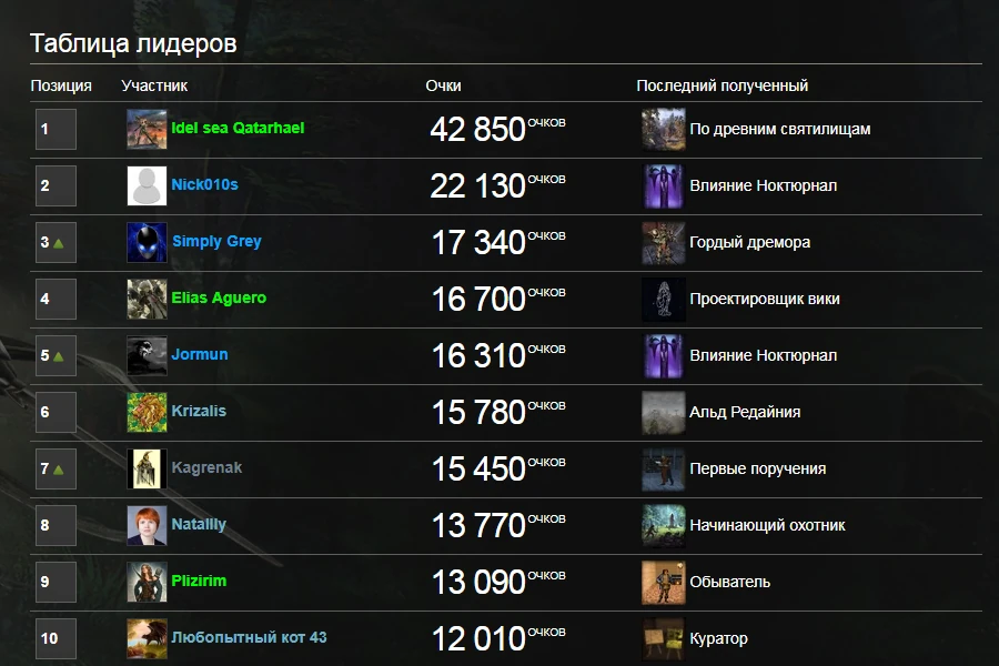 Доска лидеров на TES Wiki