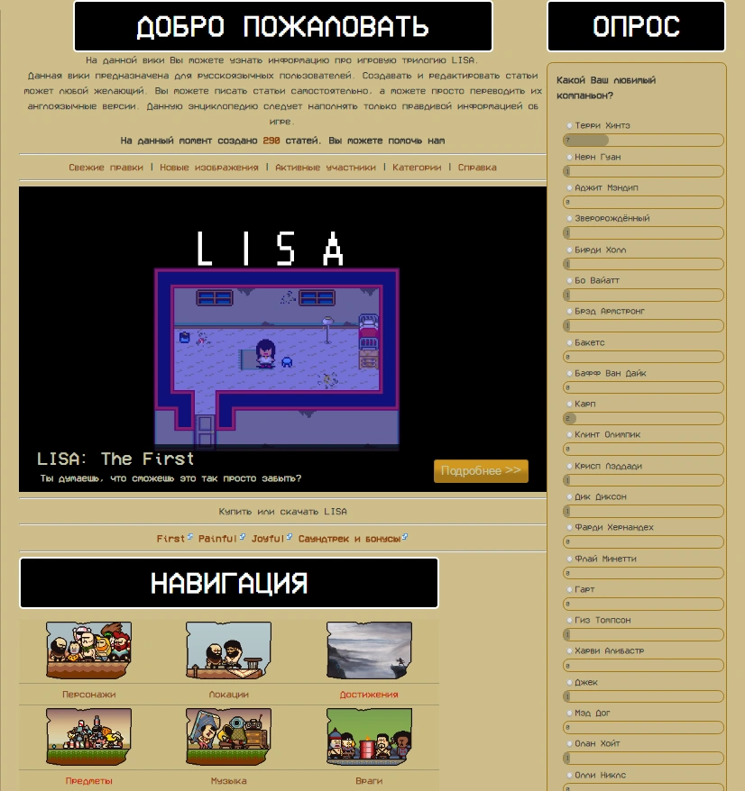 Lisa RPG Wiki — бронзовый русскоязычный википроект о серии игр LISA.