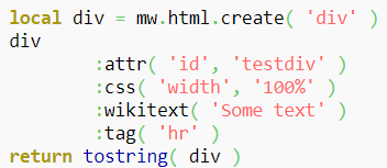 В свою очередь, библиотеки Scribunto в большей степени предназначены для работы на Фэндоме и используются для работы со страницами: получение URL-адреса, доступ к frame и дальнейшая работа с ним, работа со строками, создание HTML тегов и многое другое. Подробнее изучить содержимое библиотек можно на FANDOM Open Source Library[6].