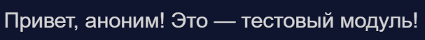 После того как страница модуля была создана, необходимо добавить на неё код (иначе создание модуля не имеет смысла). Если требуется начать написание модуля с нуля, на страницу нужно добавить следующий код: