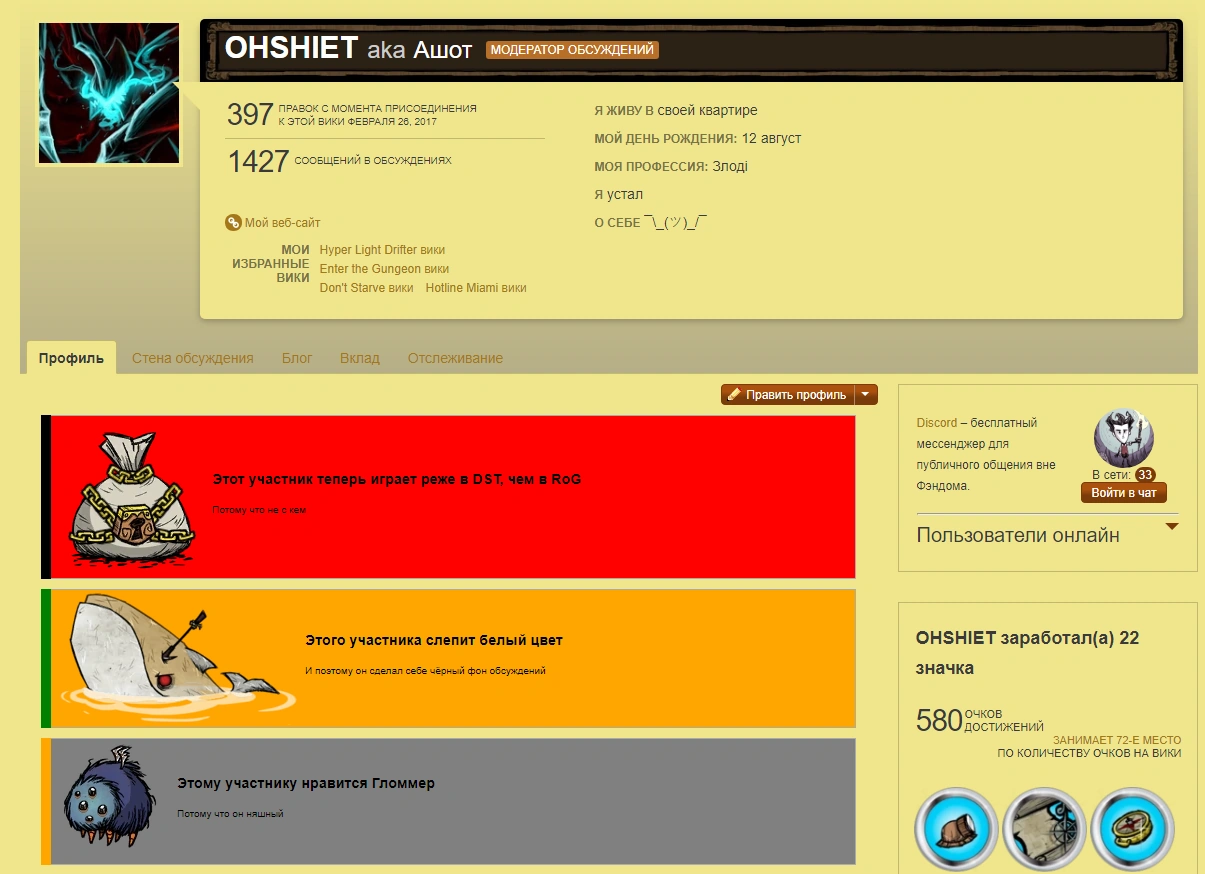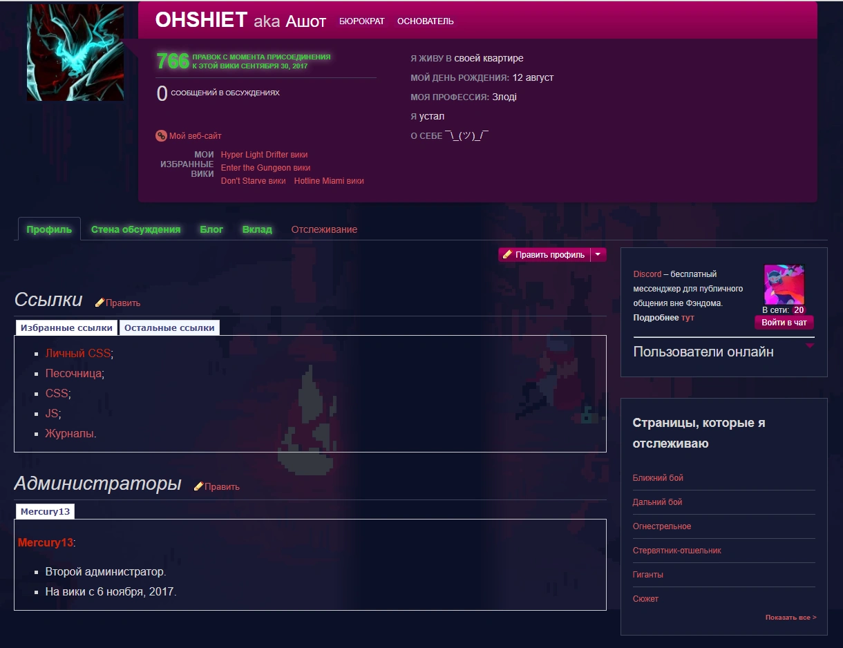 - Hollow Knight Wiki — сделал чуть больше 300 правок, иногда заходит и исправляет неточности.