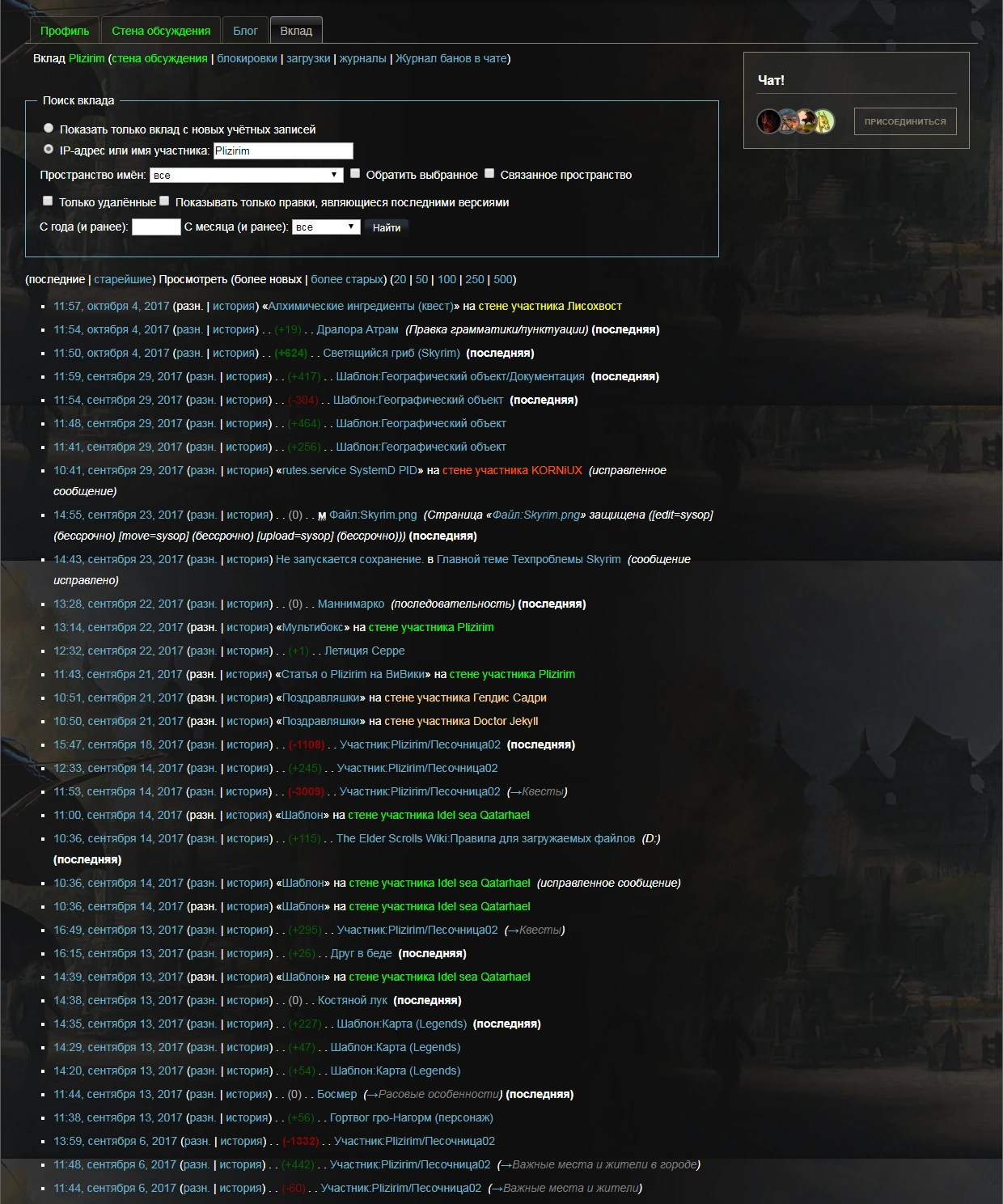 Вклад на TES Wiki ~ в сентябре 2017.
