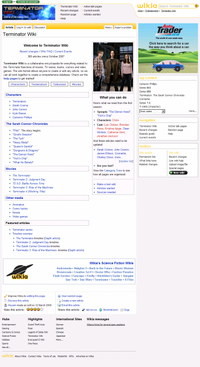 Вверху находились блок с логотипом «Викия» (до 2006 года — Wikicities), поиск и меню вики. Чуть ниже были расположены кнопки «Править», «История» и т. п. Вся остальная часть была заполнена основным пространством, а также рекламой. Нижняя панель очень походит на нижнюю панель в Monaco.