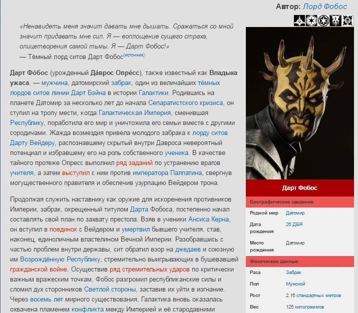 - Дарт Зэйд — участник средней активности, продолжительное время работающий на вики.