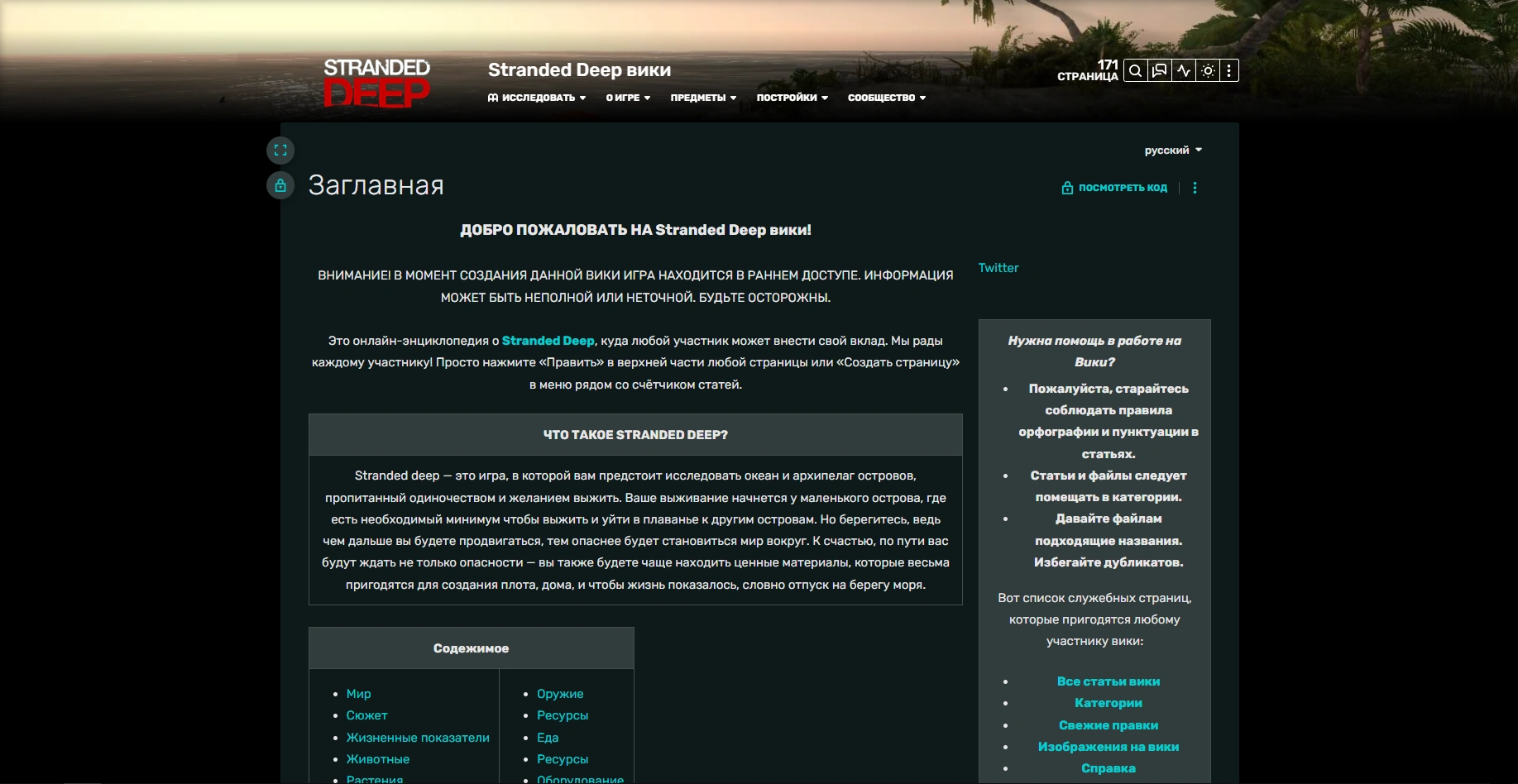 - ↑ Запрос администратора на Stranded Deep Wiki