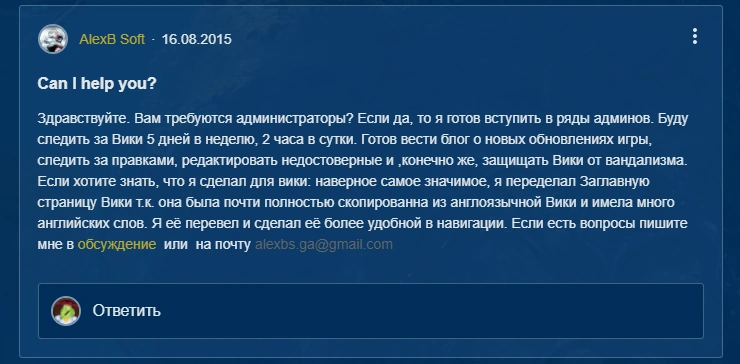 16 августа AlexB Soft обратился к основателю с целью получения должности администратора, однако ответа так и не получил[15].