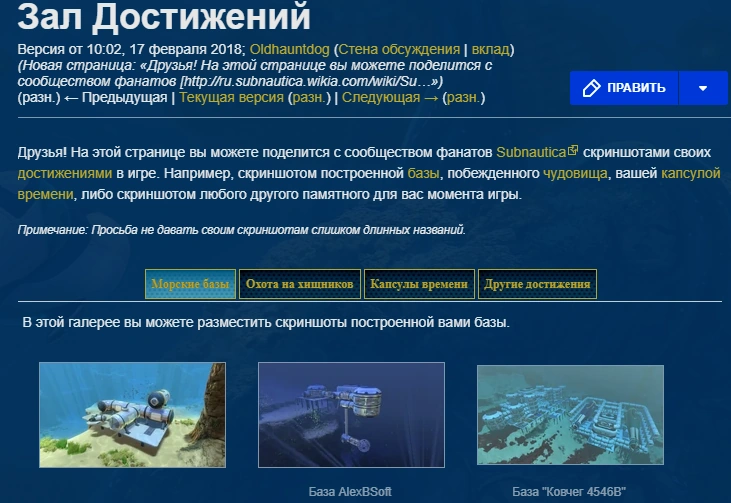 - ↑ Правка DestrucTop’а в статье «Subnautica»