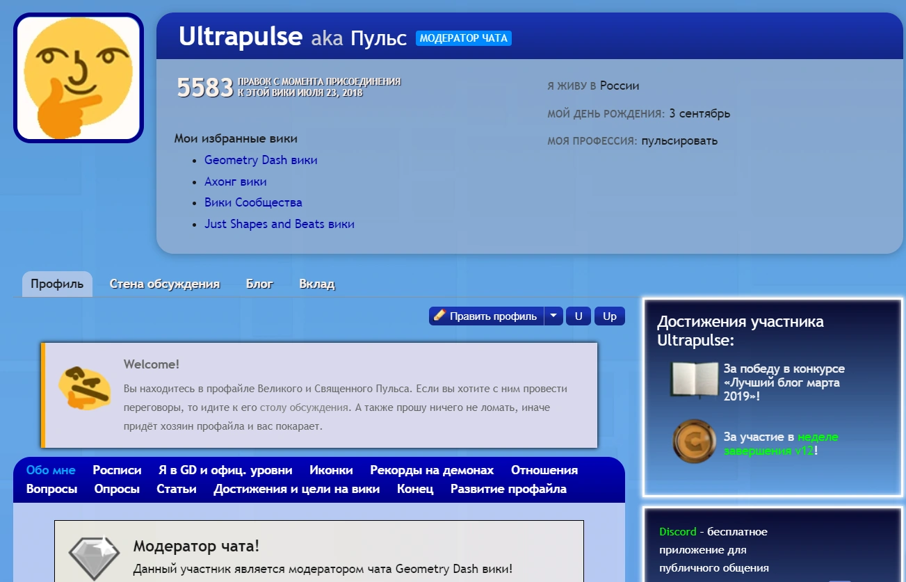 Профайл участника на Geometry Dash Wiki
