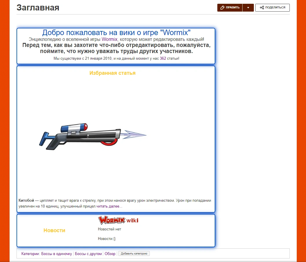 Wormix Wiki — заброшенный вики-проект, посвящённый онлайн-игре «Wormix». На проекте насчитывается .